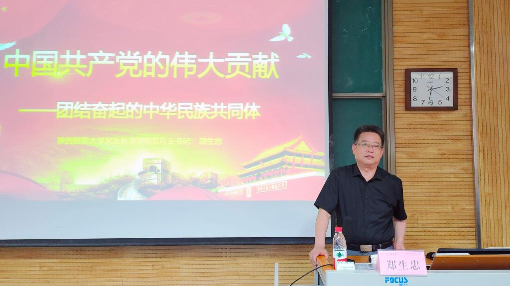 6月2日,英国365集团官网“传承红色基因,铸牢中华民族共同体意识”党史学习教育系列讲座在雁塔校区教学五楼5101开讲。公司党总支书记郑生忠老师作了题为“中国共产党的伟大贡献——团结奋起的中华民族共同体”的党史学习教育辅导报告。公司领导班子成员、全体教职工、研究生、民族预科生参加了讲座,讲座由公司专职辅导员热依木主持。