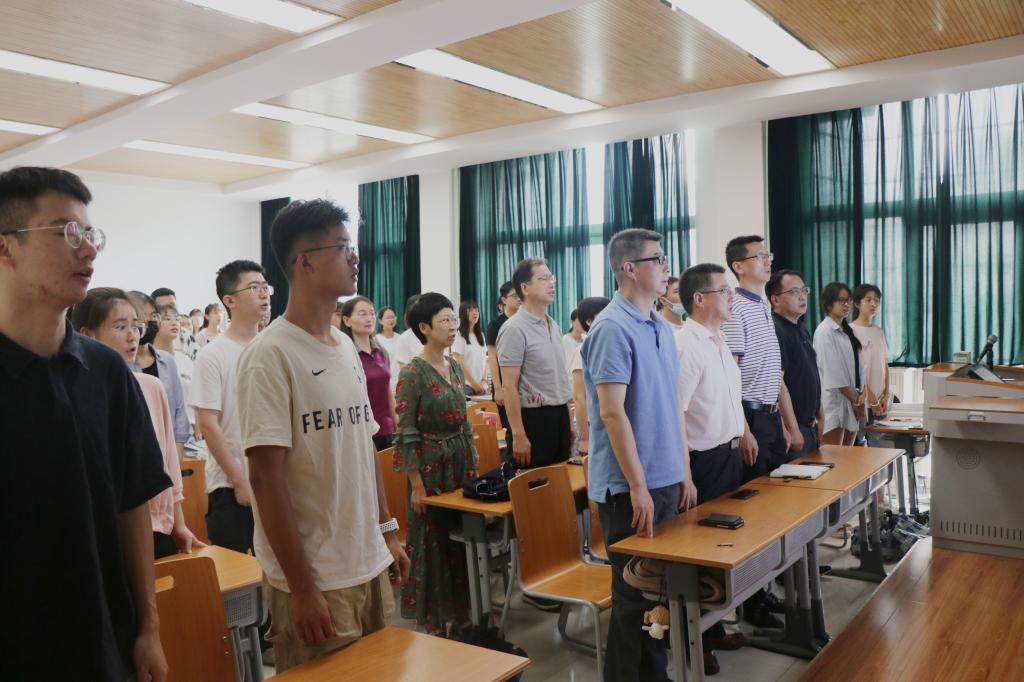 研究生党支部书记董丙鑫:今天是一个十分重大的日子,我们迎来了中国共产党的百年华诞。在观看完庆祝大会后,我想结合习近平总书记重要讲话谈几点自己的感受。首先,百年大党风华正茂、百年历程风雨兼程,祝福我们伟大的中国共产党100周年生日快乐;其次,习近平总书记的重要讲话中给我印象深刻的是“中国共产党、领导和团结全国各族人民、不懈奋斗、实现中华民族伟大复兴的中国梦”,这几个关键词串联成一句话,就包含了实现伟大梦想的领导者、参与者、实现途径以及最终目标;最后,我想说美好生活是奋斗出来的,我们要逢山开路、遇水架桥,在党的领导下勇于战胜前进道路上的一切艰难险阻和风险挑战,为建设社会主义现代化强国以及实现中华民族伟大复兴的中国梦贡献青年力量。作为员工党支部书记,我深知党员身份就意味着担当与责任,我将会在各位老师以及同学的帮助下不断提升自己的业务能力,在以后的工作中更好地为同学、老师服务!
