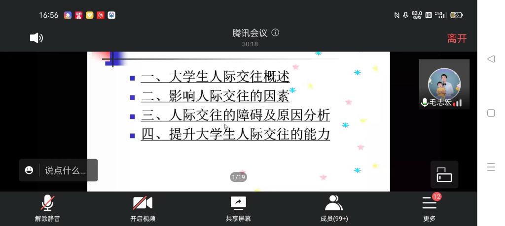 为进一步关注员工心理健康,使同学们掌握人际交往的基本技能,提高人际交往能力和自信心,英国365集团官网于5月18日下午4:30开展了以“培育阳光心态、护航青春成长”为主题的心理健康教育专题讲座,公司心理健康教育(咨询)指导中心副教授、中国心理学会注册系统注册咨询师、国家二级心理咨询师毛志宏作了题为“让心的距离更近—老员工人际交往能力的提升”的主题心理育人专题讲座。公司团总支书记热依木·努尔麦麦提,专职辅导员王霞、兼职辅导员谢成玉、夏逸静以及全体员工通过腾讯会议平台收看了讲座直播。