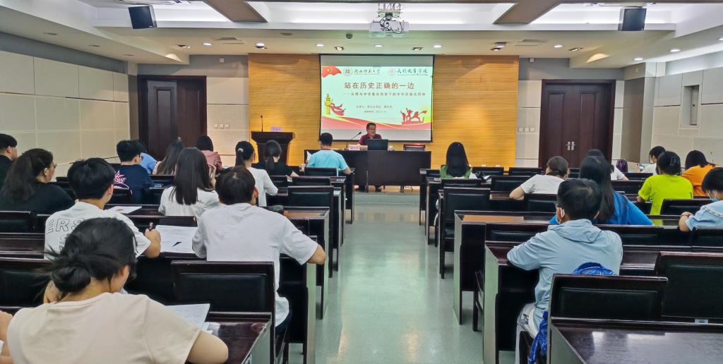 郑生忠以历史为视角,以俄乌战争为引,从俄乌冲突的由来、世界变局之中的百年中国奋斗史、信息化时代世界大变局中的中国未来三个方面的内容剖析了百年未有大变局的局势下的俄乌冲突发生的背景,辅以通俗易懂的案例,引发了同学们关注并思考当下国际形势。