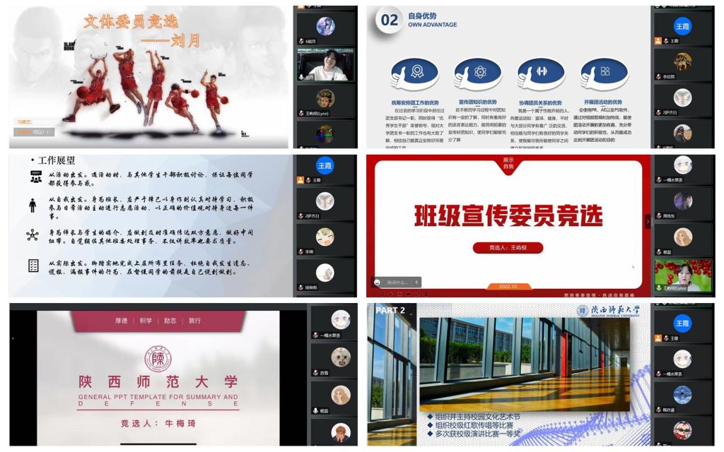 选拔过程中,同学们从个人情况、岗位认知和工作展望3个方面展开进行了分享与交流,精心制作PPT、撰写发言稿,悉心准备,充分彰显了自己的优势与特长,表达了自己的想法与态度,在选拔的过程中增进了班级同学对自己的认识与了解,在展示自我的过程中也锻炼了个人语言表达、随机应变的能力,整体选拔工作开展有序,公平公正。