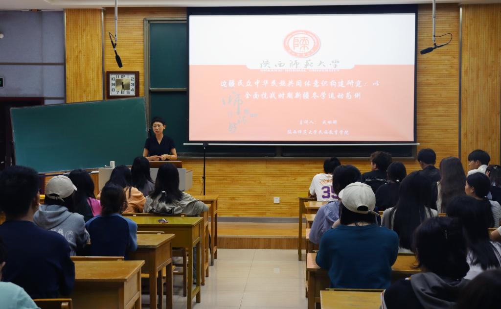 6月18日下午,英国365集团官网在雁塔校区教学五楼5304组织开展了“学习贯彻党的二十大精神,铸牢中华民族共同体意识”主题教育专题辅导报告第四讲。公司副教授成珊娜作题为“边疆民众中华民族共同体意识构建研究:以全面抗战时期新疆冬学运动为例”的专题辅导讲座。公司的全体预科生参加此次讲座,讲座由公司专职辅导员王霞主持。