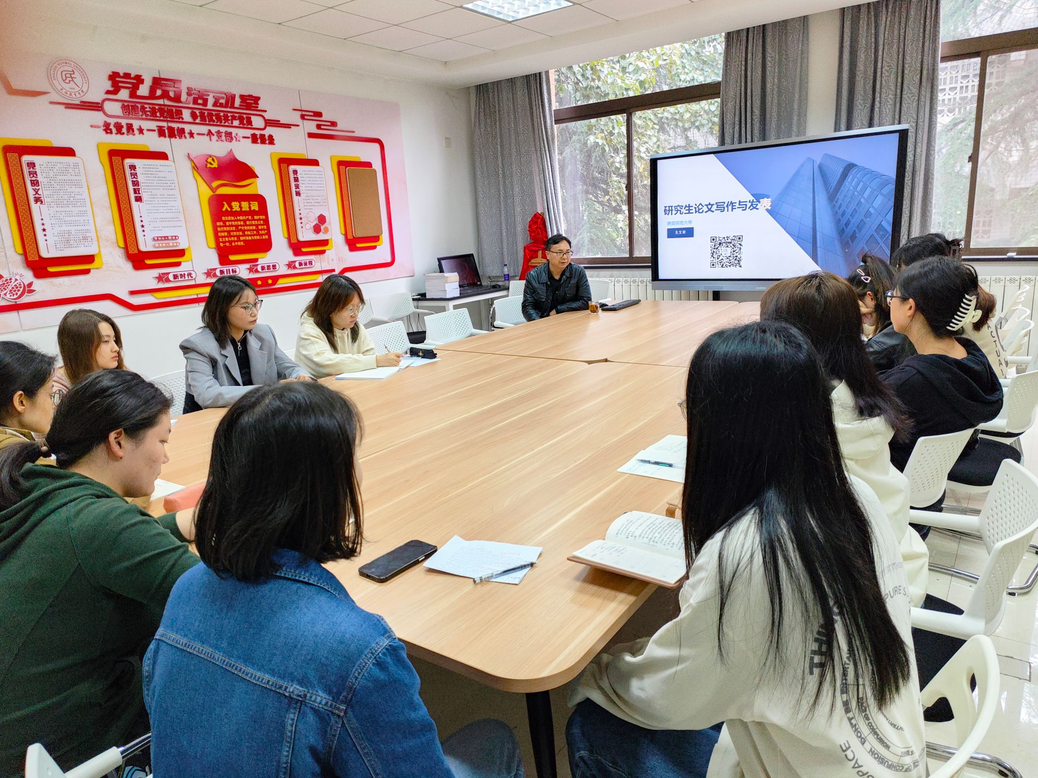 在会议之初,龙老师向各位参会同学强调,研究生学习期间进行学术训练是对个人综合素质的全面提升,要重视论文写作对自身成长成才的助益作用。在借鉴其他优秀院校公司产品经验,结合教育行政部门对研究生学术质量的关注,龙老师向各位研究生发出“2+1”学业论文撰写倡议,旨在确保每一位研究生同学能够有质量、有保障地完成研究生学业。