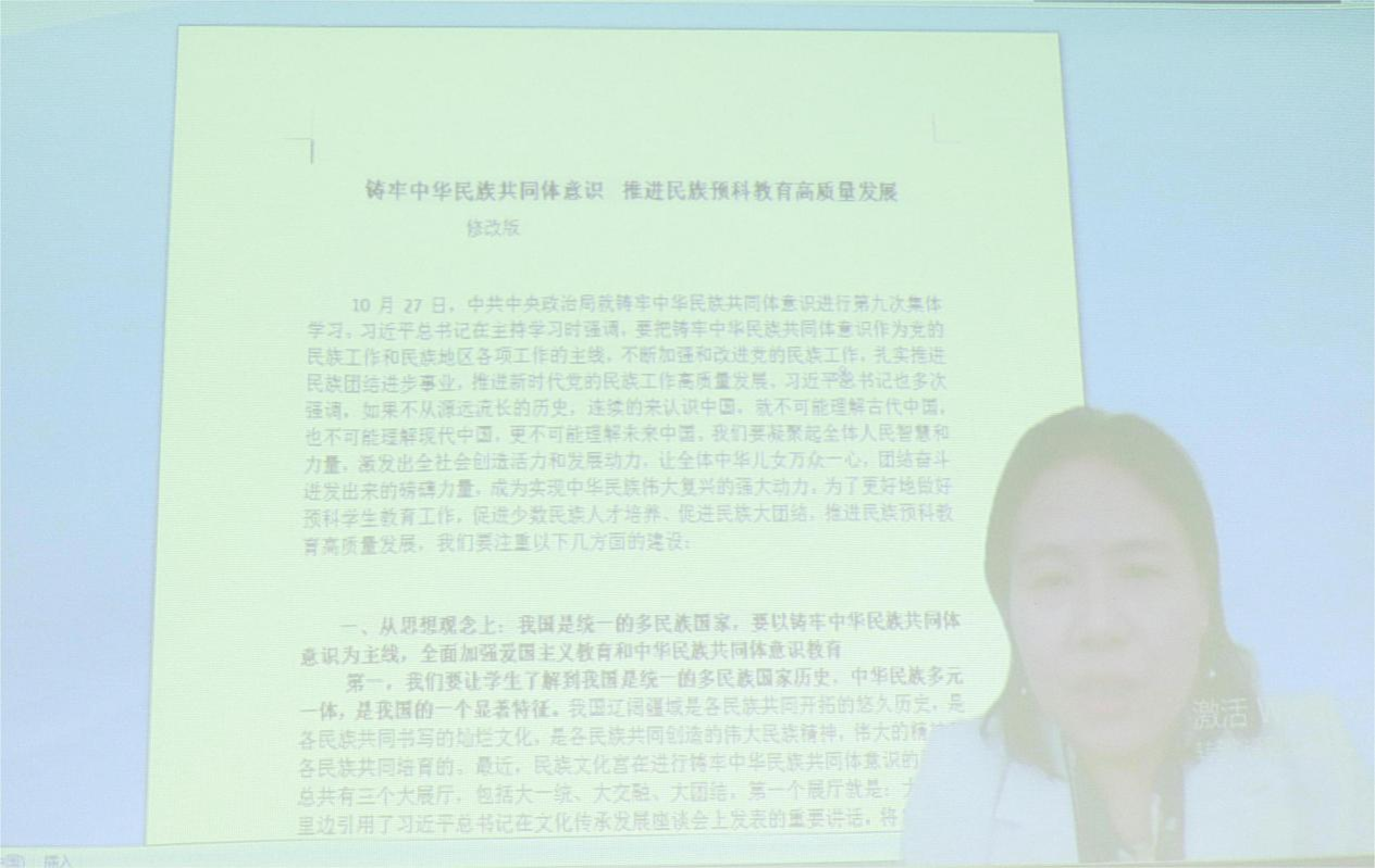 公司教师萨仁娜以课程思政建设为出发点,做了《高校民族预科课程思政助推铸牢中华民族共同体意识:现实困境与实现路径》专题报告,着重阐述了如何开展“课程思政”建设,有效铸牢预科员工中华民族共同体意识,使之成为新时代提升高校少数民族预科教育质量、人才培养能力的重要抓手。