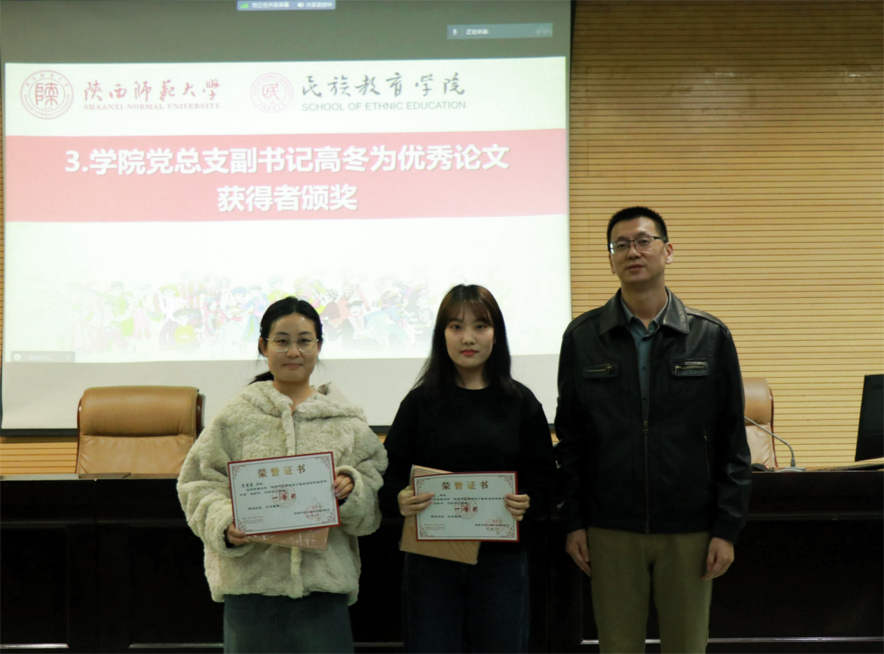 公司党总支副书记高冬为预科教育研究专题征文活动中的获奖同学进行颁奖。