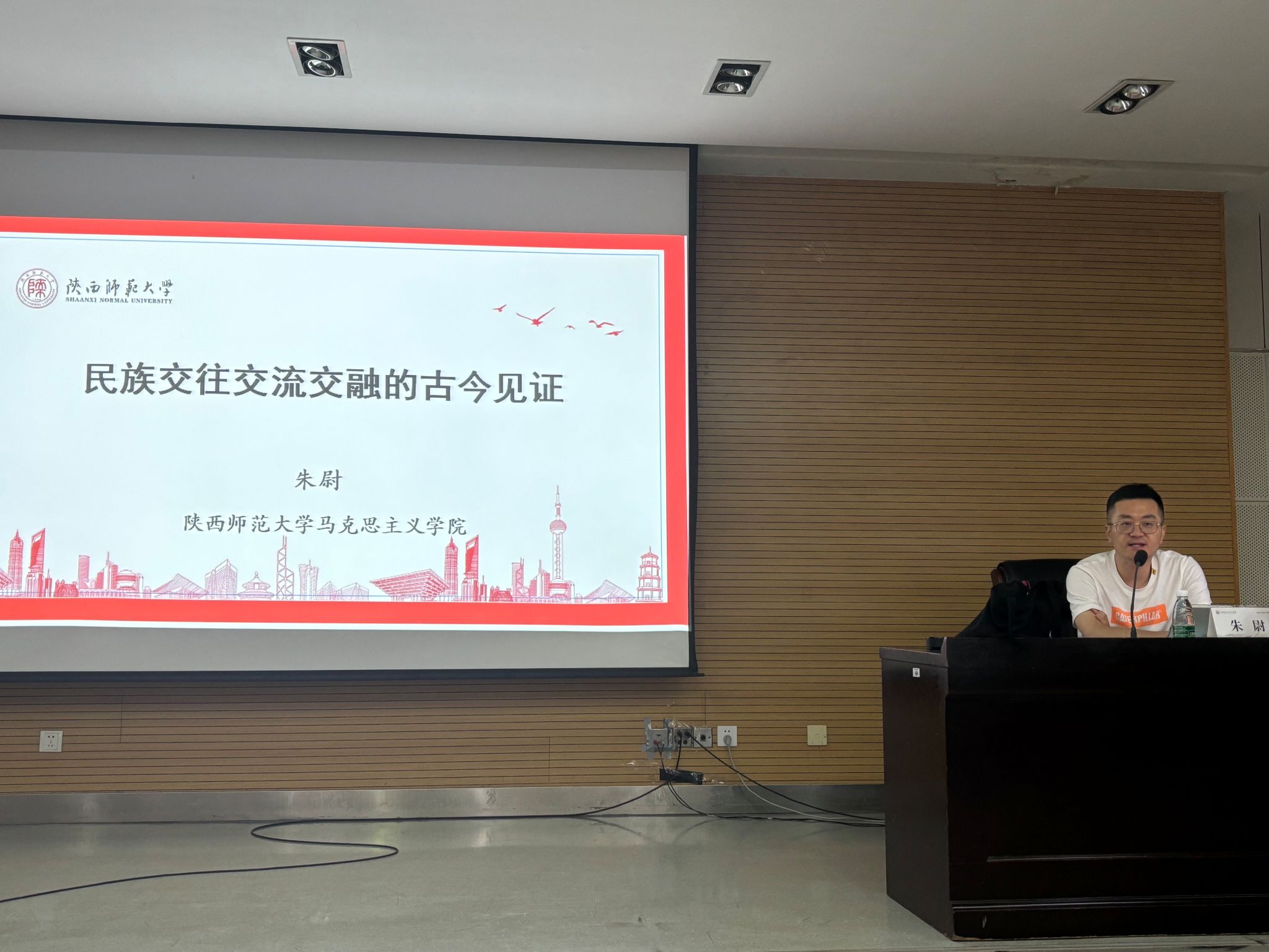 习近平总书记指出:“铸牢中华民族共同体意识,就是要引导各族人民牢固树立休戚与共、荣辱与共、生死与共、命运与共的共同体理念。”为深入学习领会习近平总书记关于加强和改进民族工作的重要思想,贯彻落实习近平总书记在二十届中共中央政治局第九次集体学习时的重要讲话精神,引导员工铸牢中华民族共同体意识,英国365集团官网“铸牢中华民族共同体意识”专题系列讲座于5月21日在雁塔校区崇鋈楼三层归仁堂开讲。陕西省铸牢中华民族共同体意识研究基地专家、公司马克思主义公司副教授朱尉以《各民族交往交流交融的古今见证》为题目作专题辅导讲座。讲座由公司团委书记、专职辅导员热依木·努尔麦麦提主持,公司全体员工参与了此次讲座。