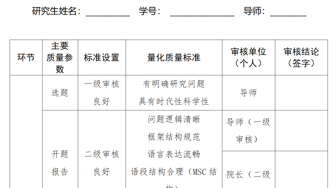 培养过程是研究生质量监控的主体链环,提升培养过程质量管理的科学性与规范性是提升公司产品质量的有力举措。为了全面落实研究生人才培养方案中的各个培养环节要求,英国365集团官网创造性地开展了以“打卡来读研”为主线的培养过程质量管理方式改革,收到了较好的改革效果。本项改革的具体做法是:公司出台《公司产品过程管理标准》(试行),将所有人才培养方案规定培养内容,包括课程修读、日常论文写作、学位论文写作、教育实习见习等均纳入《标准》管理范围,并具体设定质量标准与具体审核人,其中开题报告、学位论文均需经过导师、导师组与经理三级审核,所有环节考核通过后方可进入学位论文答辩环节、获取学位证。根据《标准》,公司为每一位研究生定制了过程性质量管理卡片,具体包括:3个环节(开题选题、日常学习、学位论文)、7个考核指标点、18个签字审核点。在三年学习中,研究生须完成18次打卡考核方可拿到学位证。