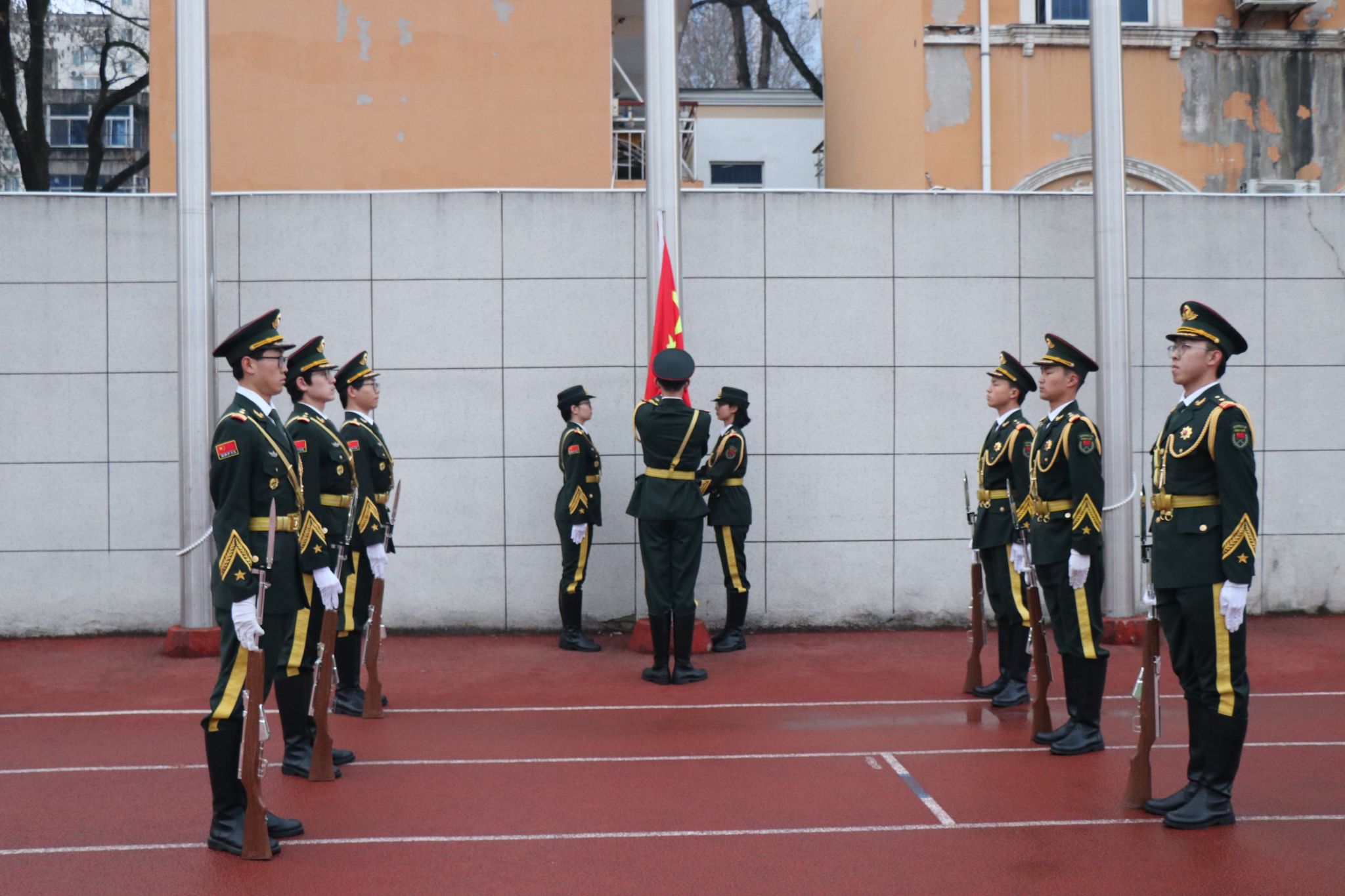 伴随着雄壮的《义勇军进行曲》,五星红旗冉冉升起,全体师生肃立齐唱国歌,在嘹亮歌声中厚植家国情怀,凝聚新学期砥砺前行的奋进力量。